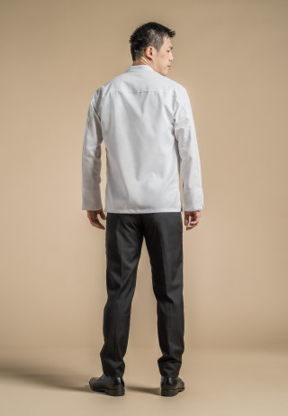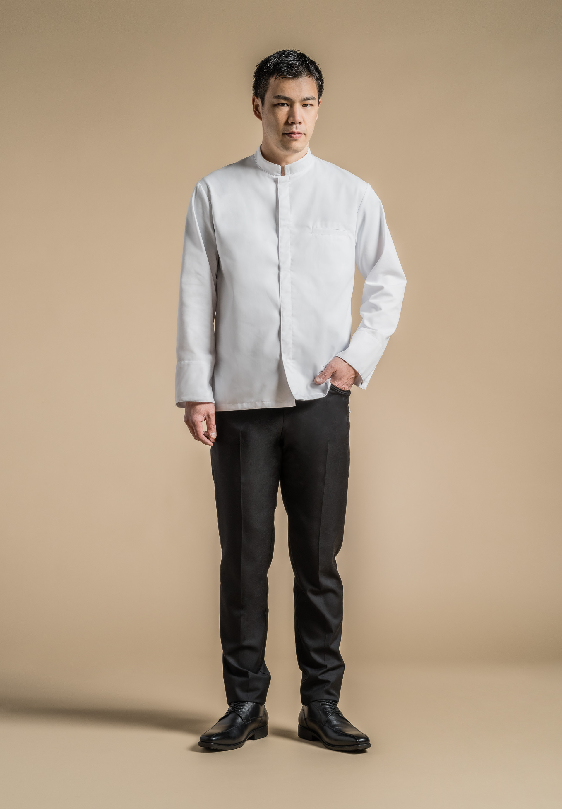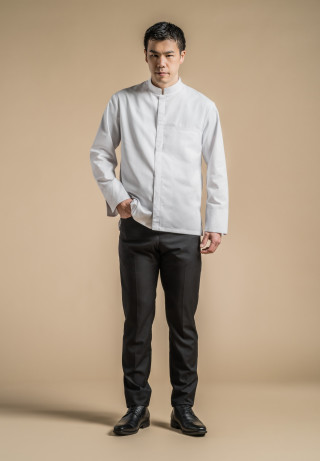 Men’s chef jacket, mandarin collar; Handmade buttons that cannot distort and side slits