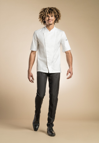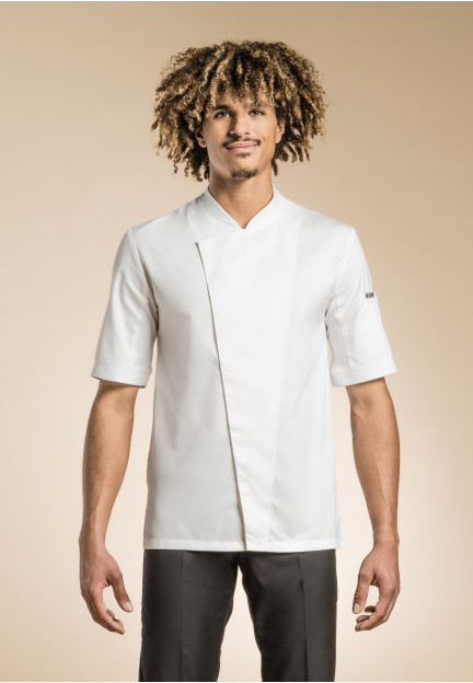 HYBRID WEAR men’s chef jacket, with an asymmetrical front yoke