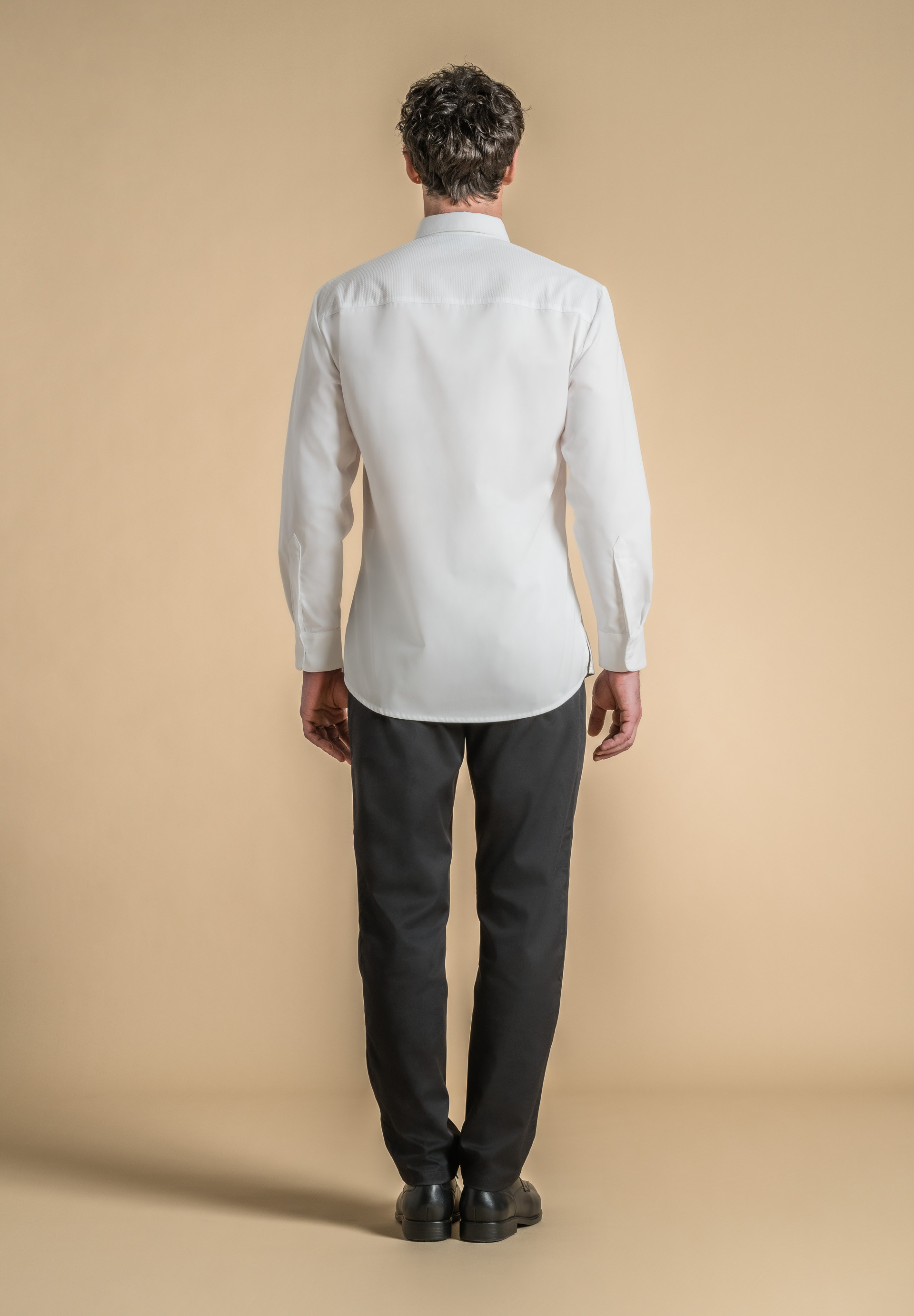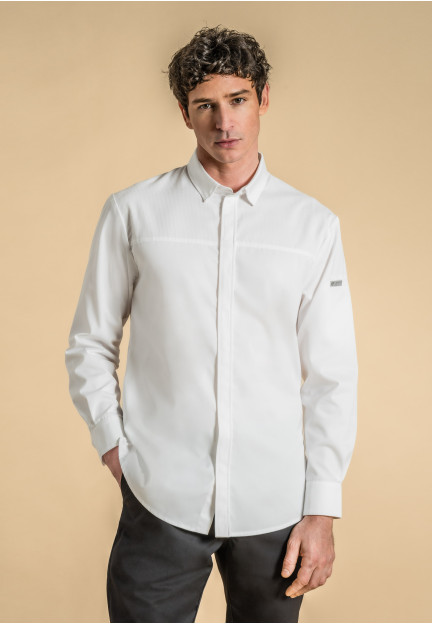 Men's chef jacket with collar shirt. Central front fastening.