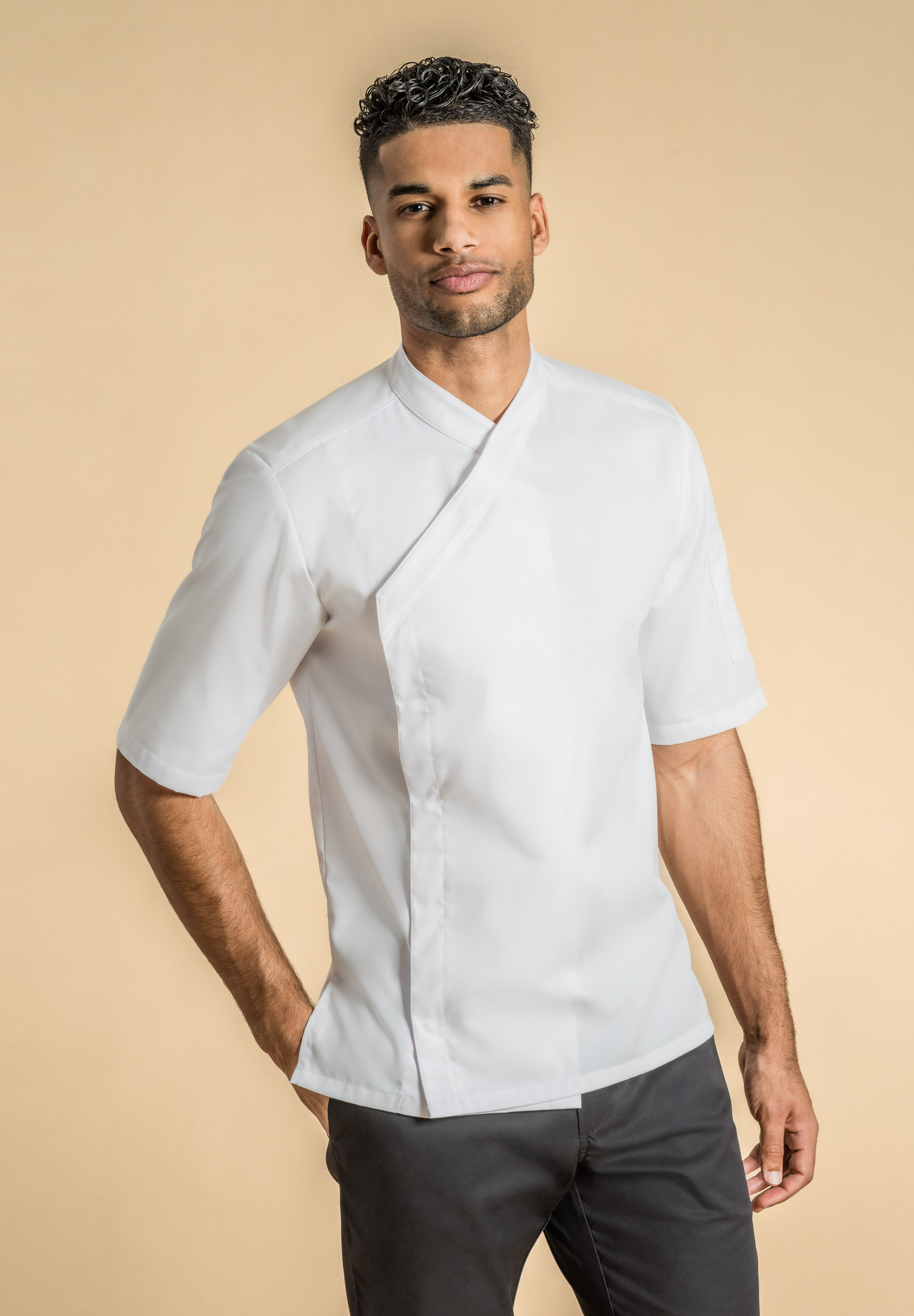 Men's chef jacket with kimono collar
