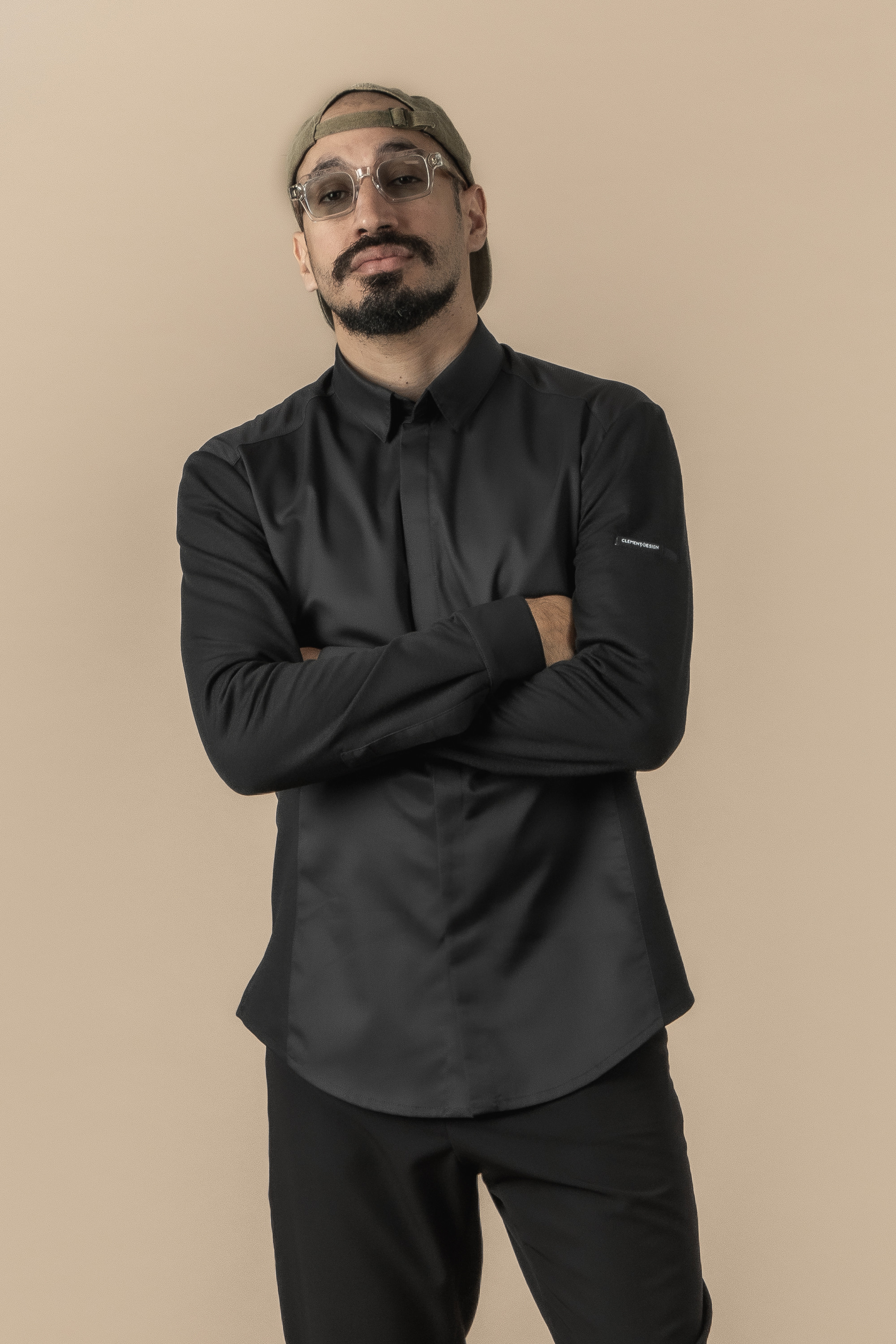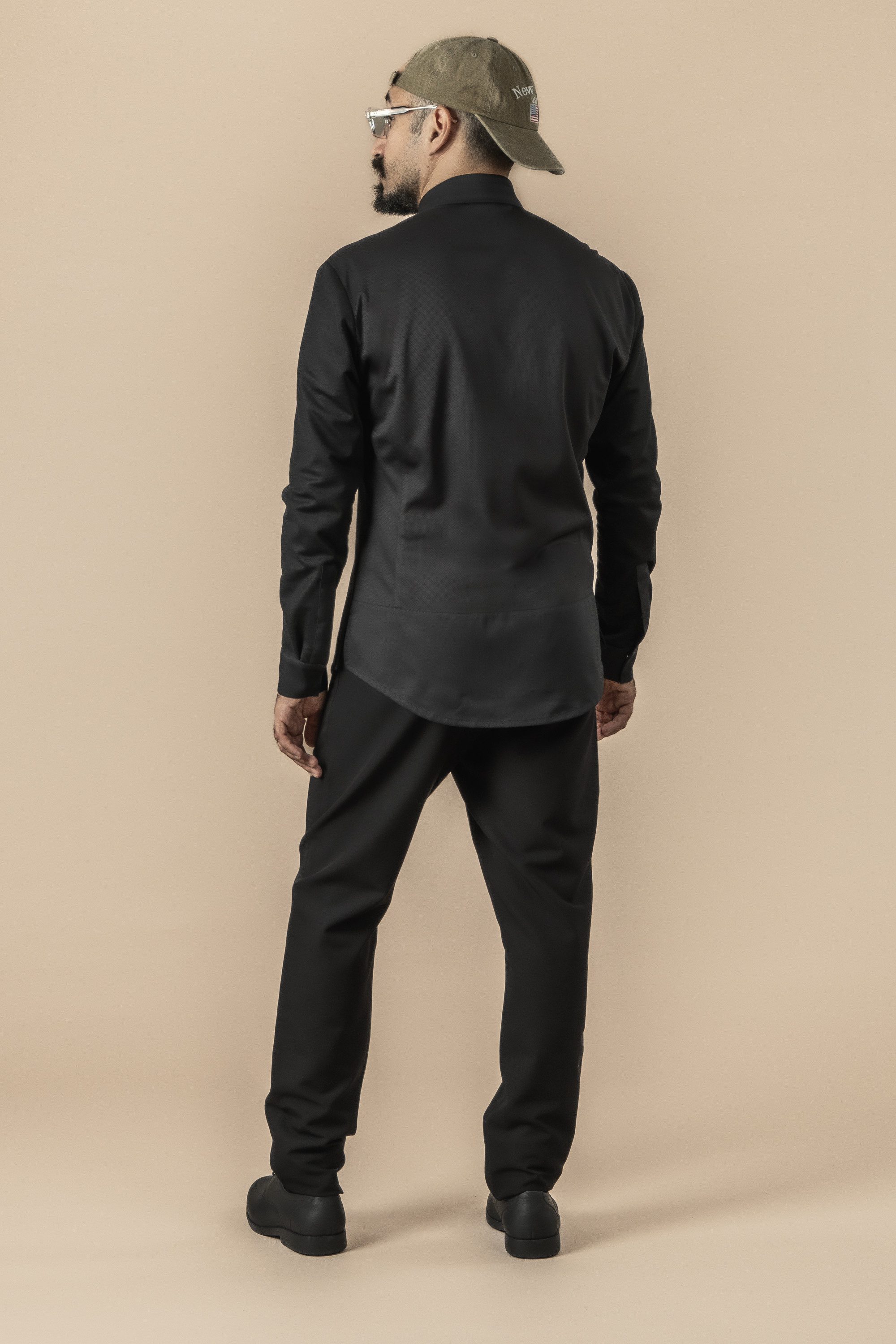 Chaqueta de hombre con cuello de oficial, botones hechos a mano, aberturas laterales