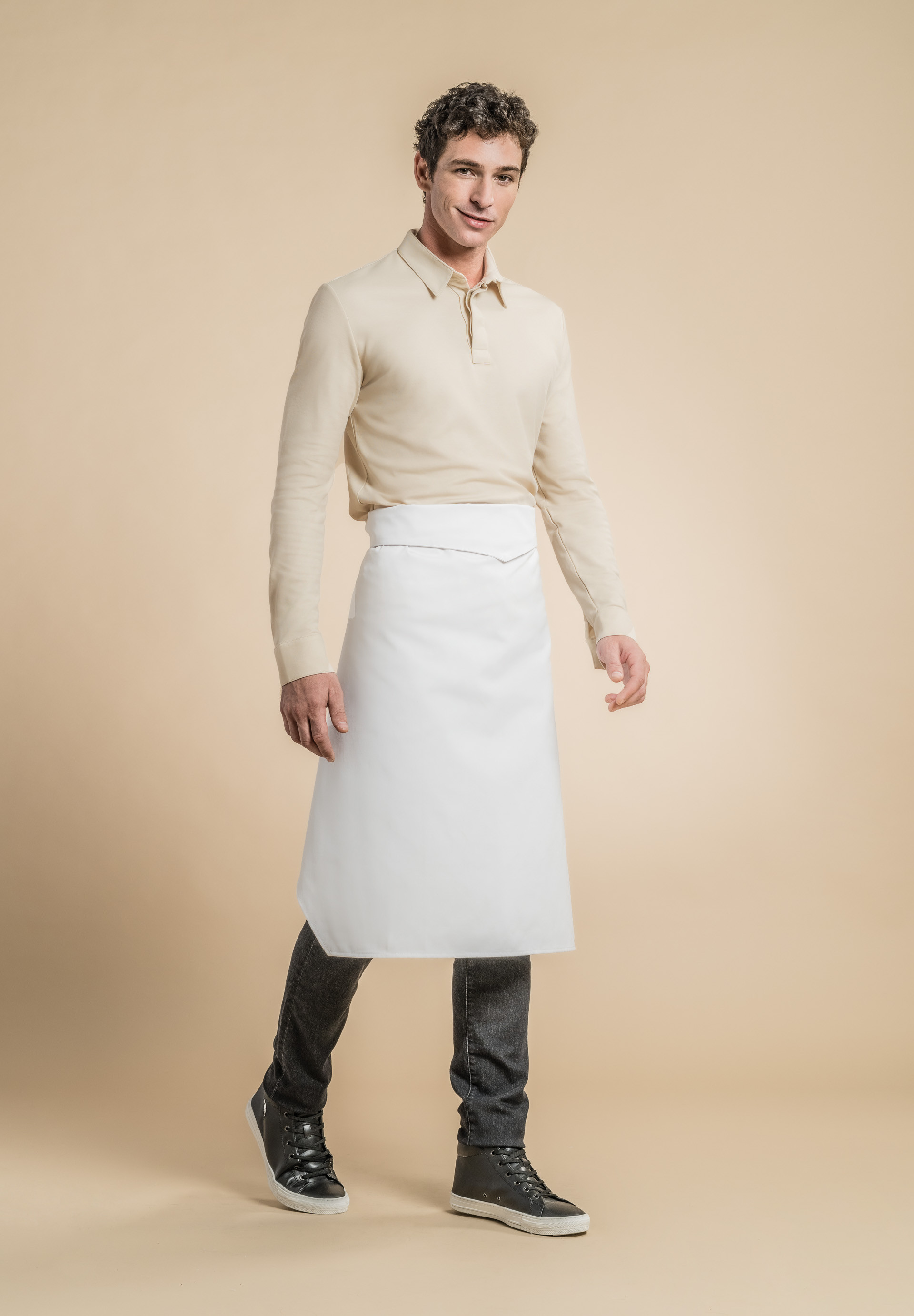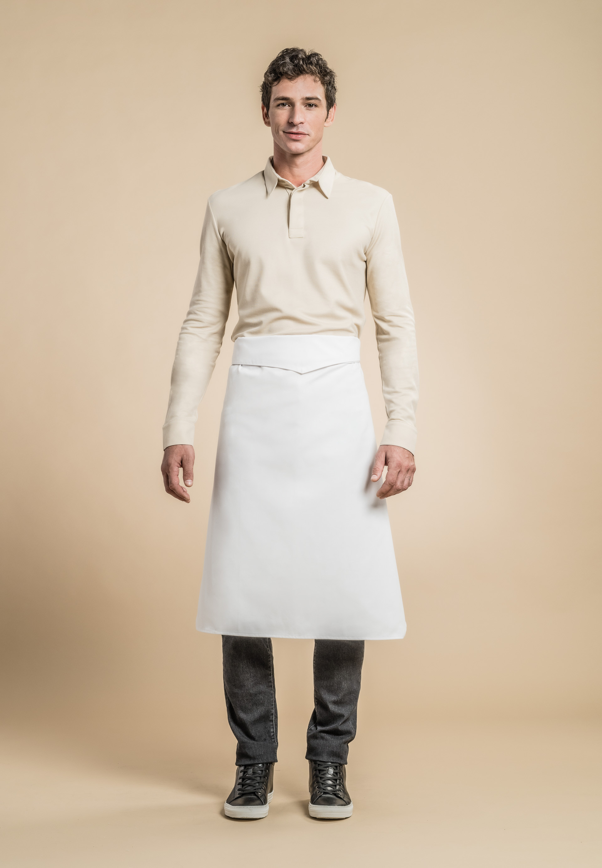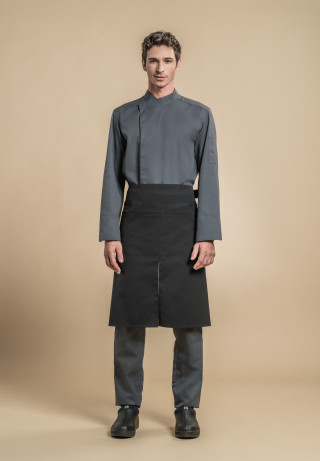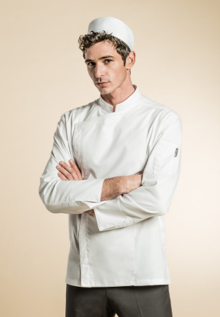 Chaqueta con cuello de oficial, botones automáticos escondidos, bolsillo para boligrafo a lo largo del dobladicho de la solapa, aberturas laterales