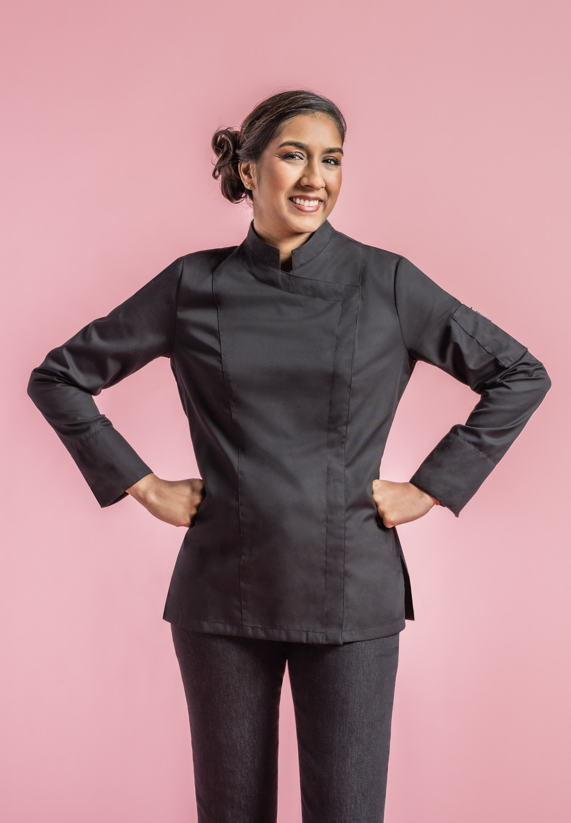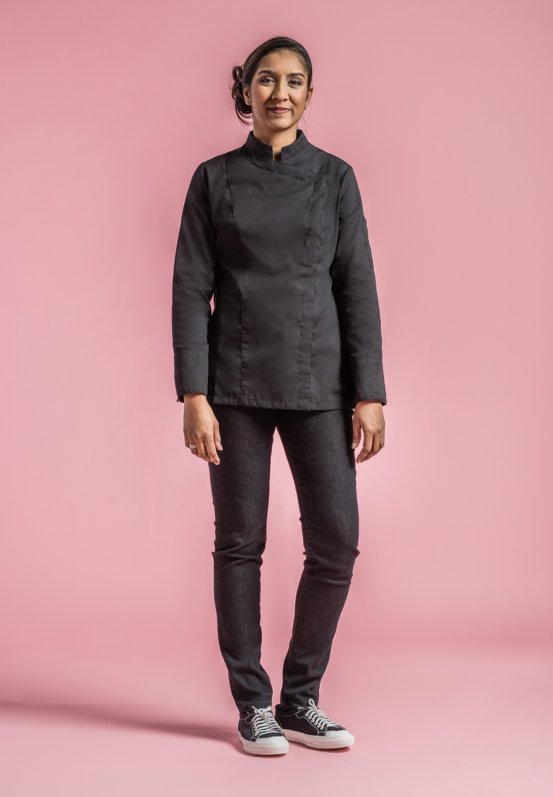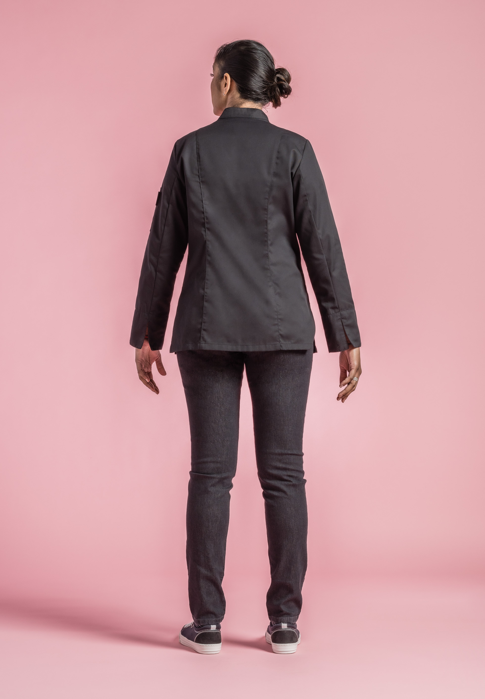 Veste de cuisine femme col officier carré.