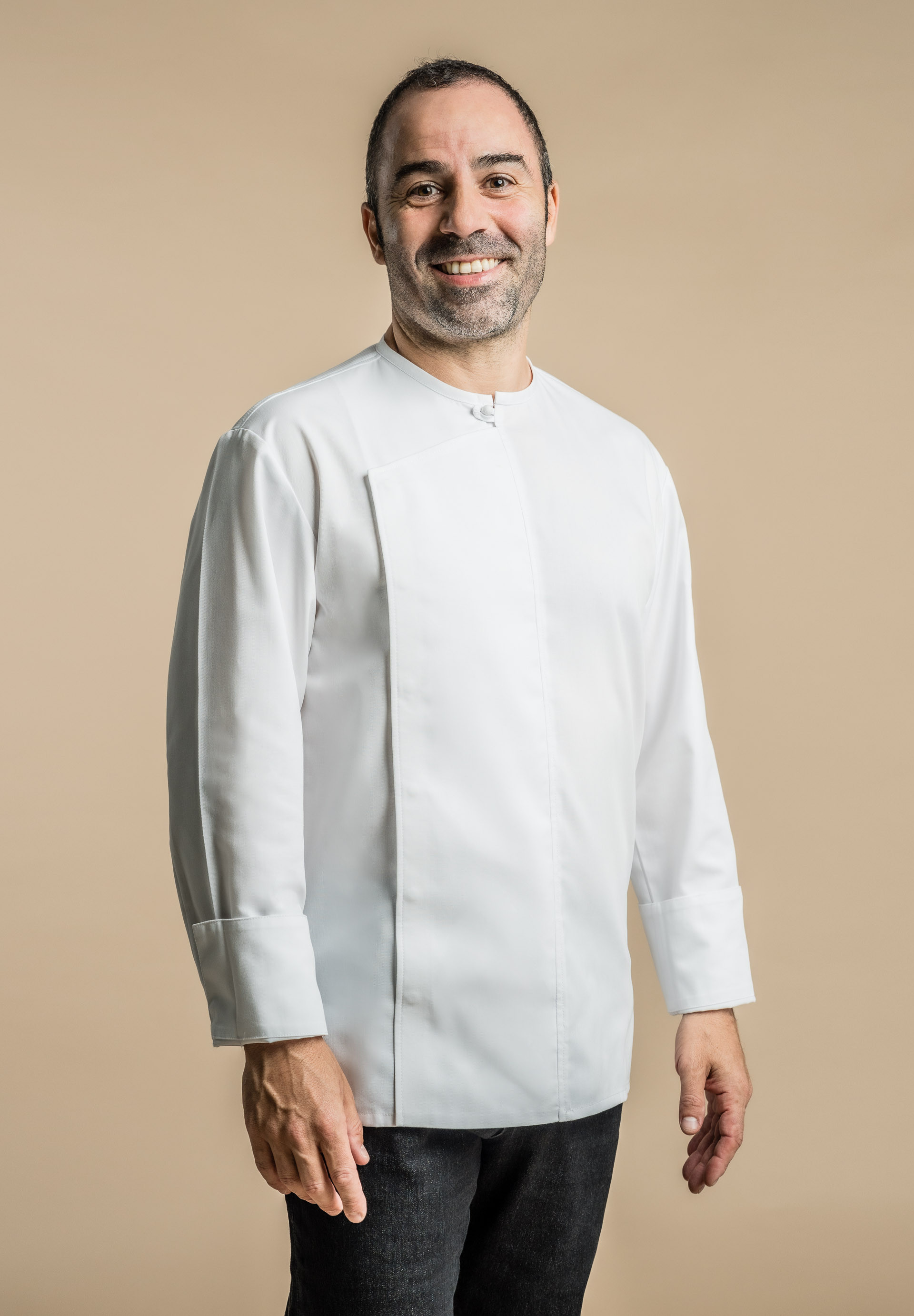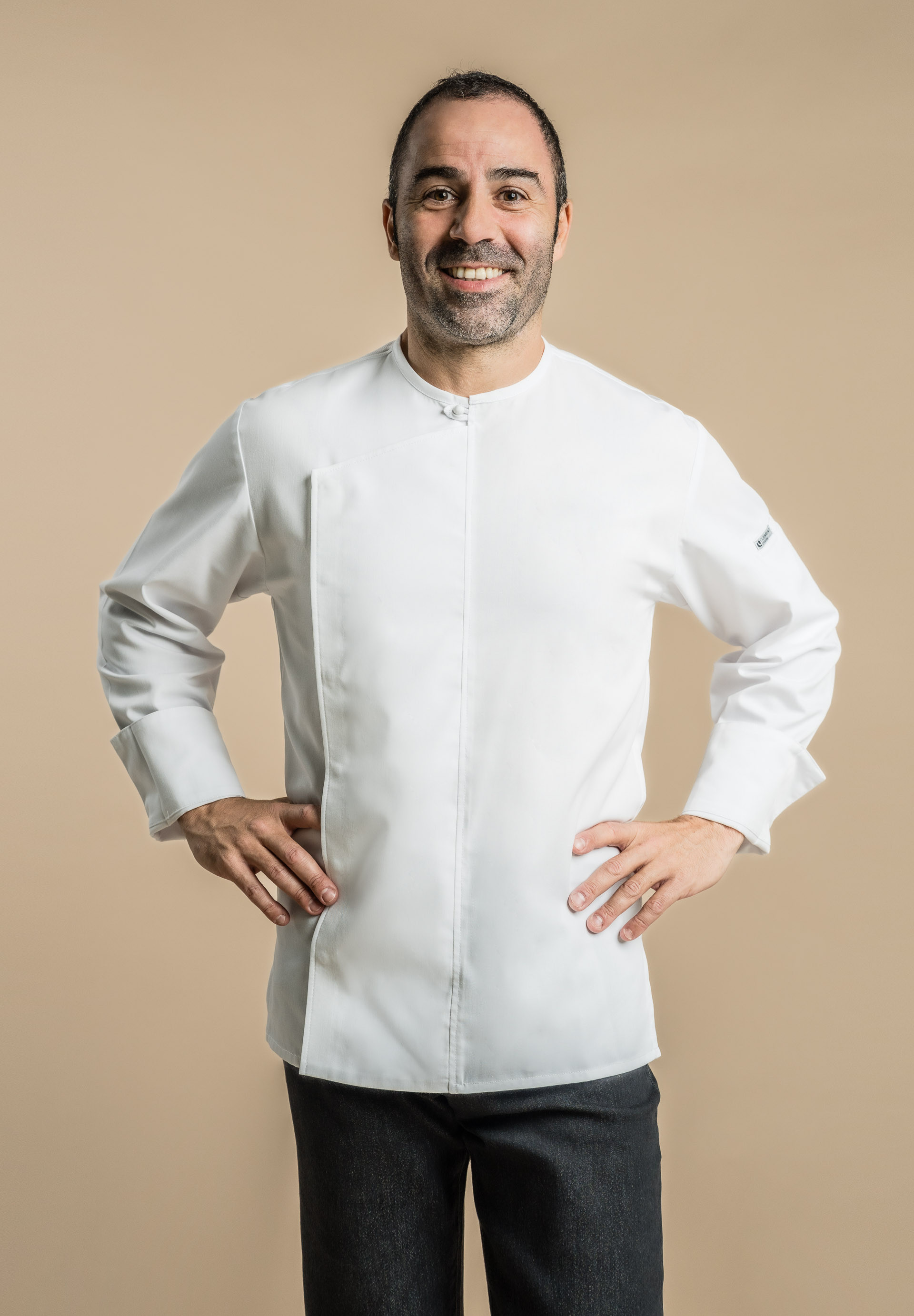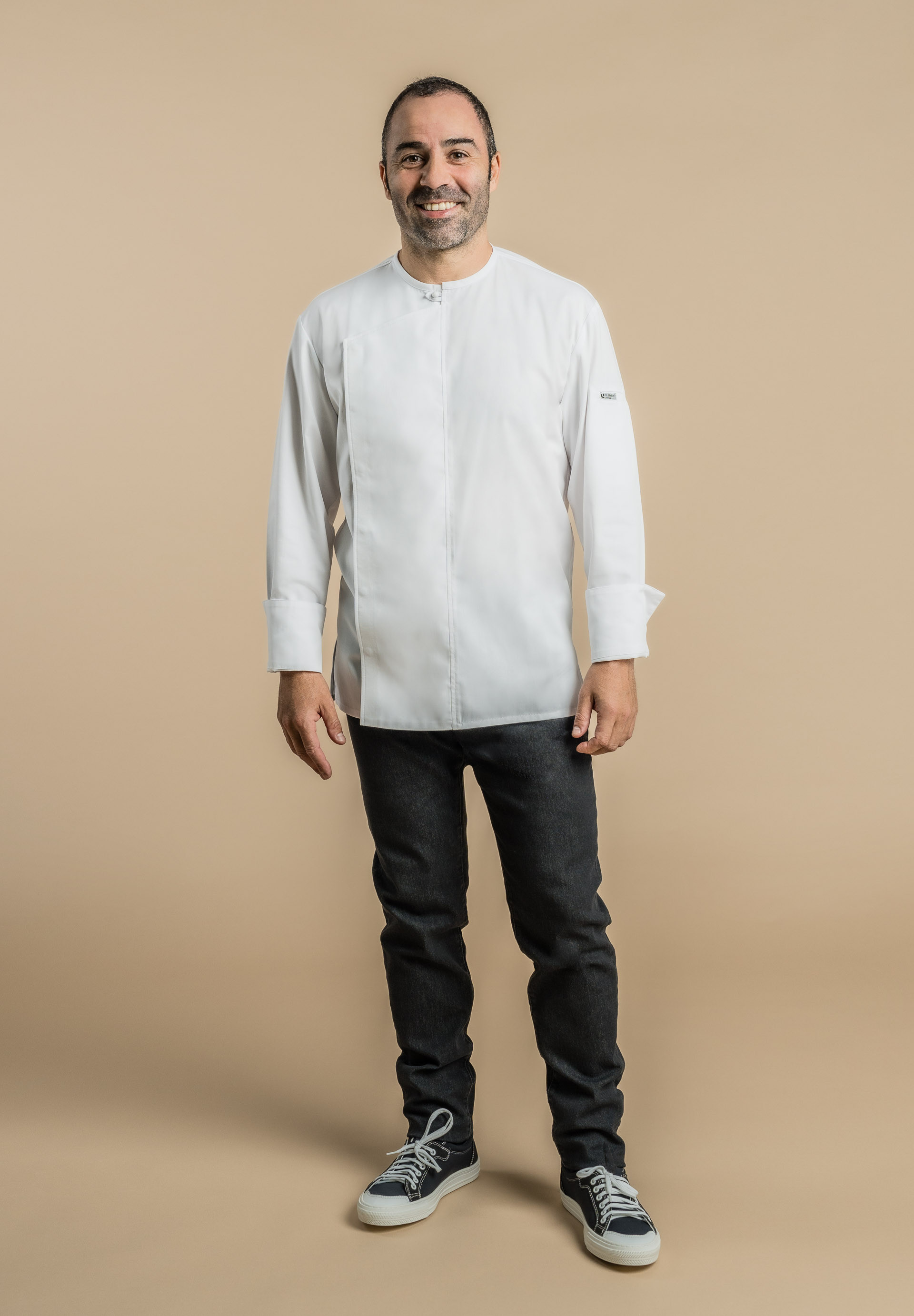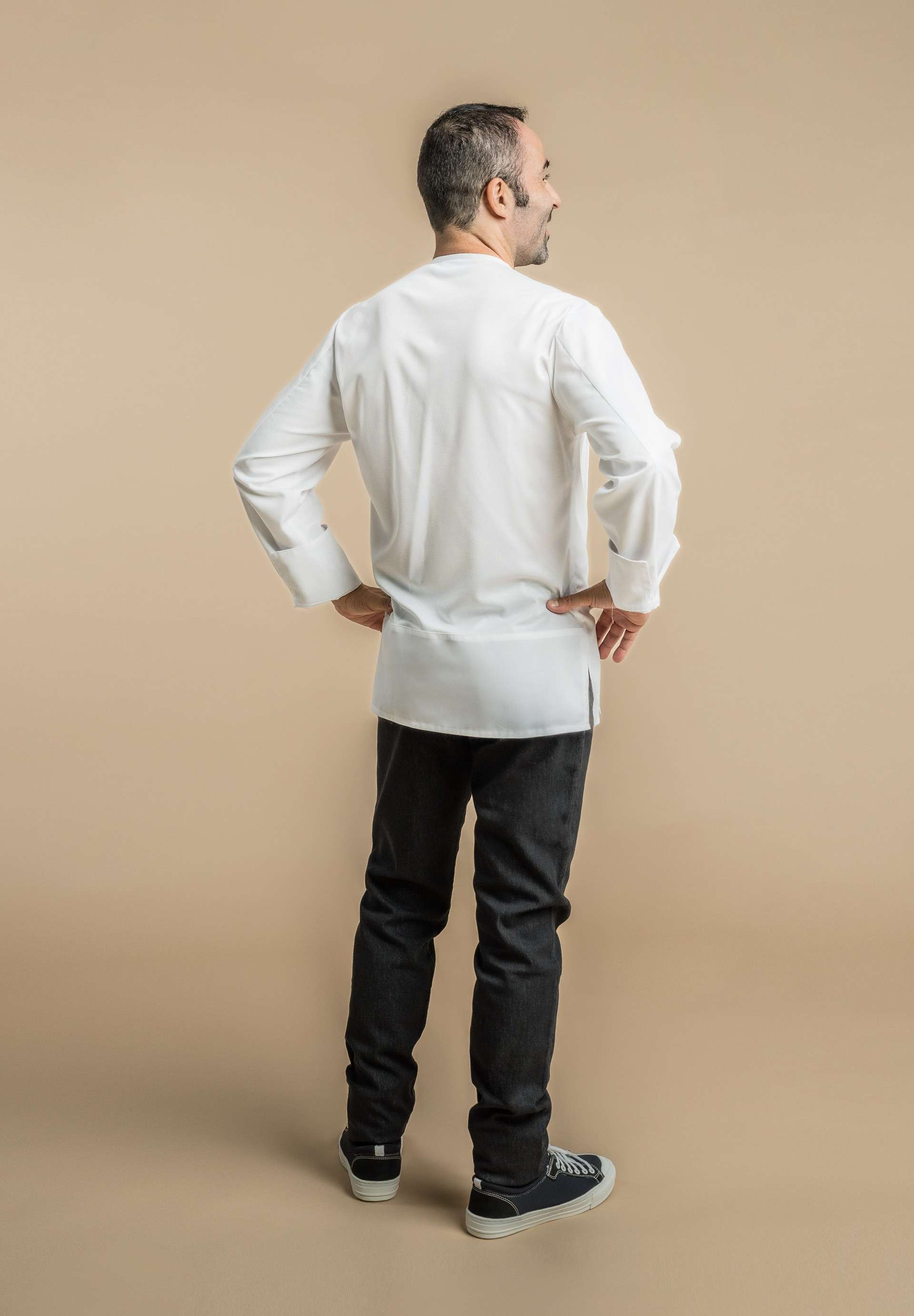 Veste de cuisine homme avec col rond.