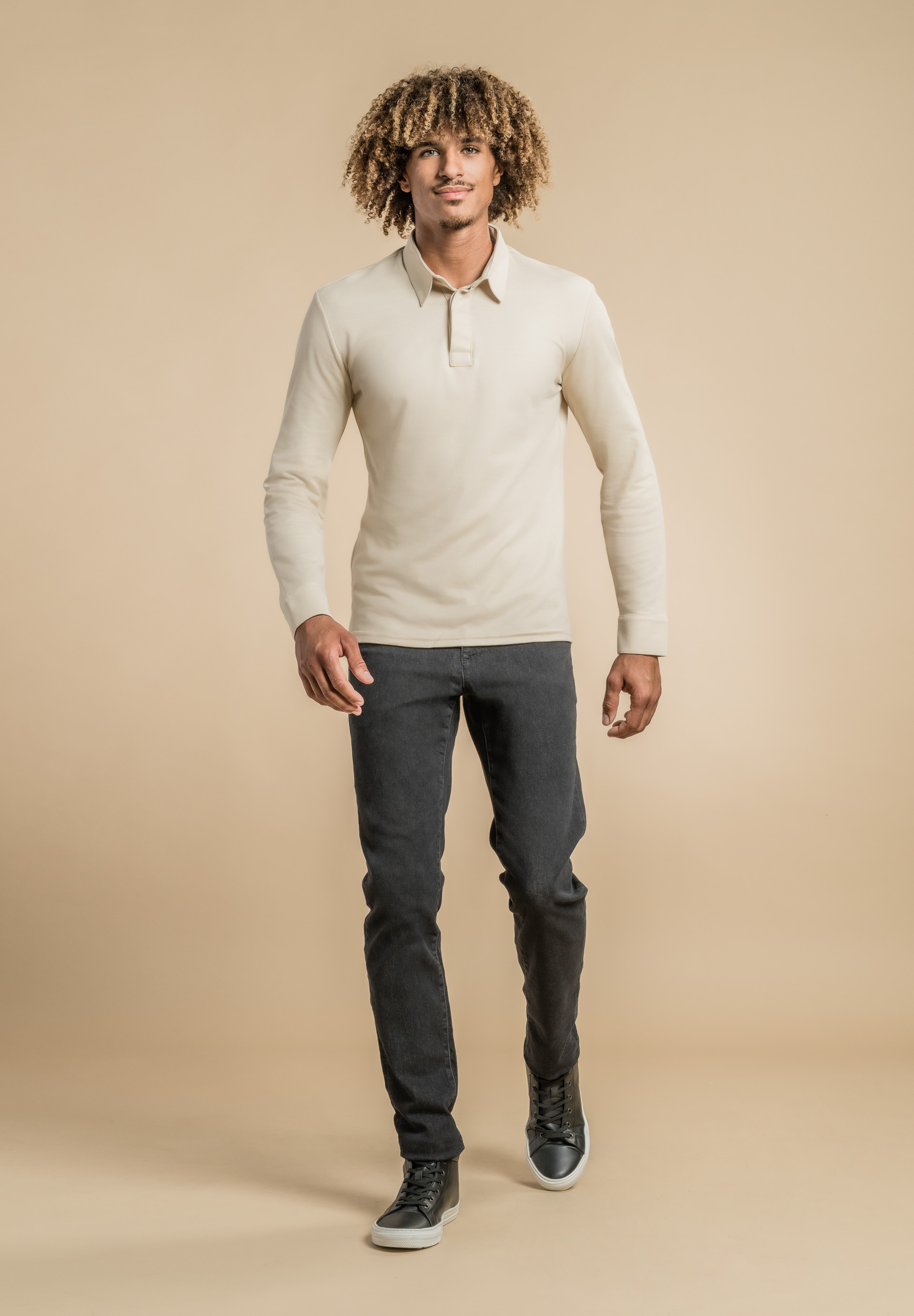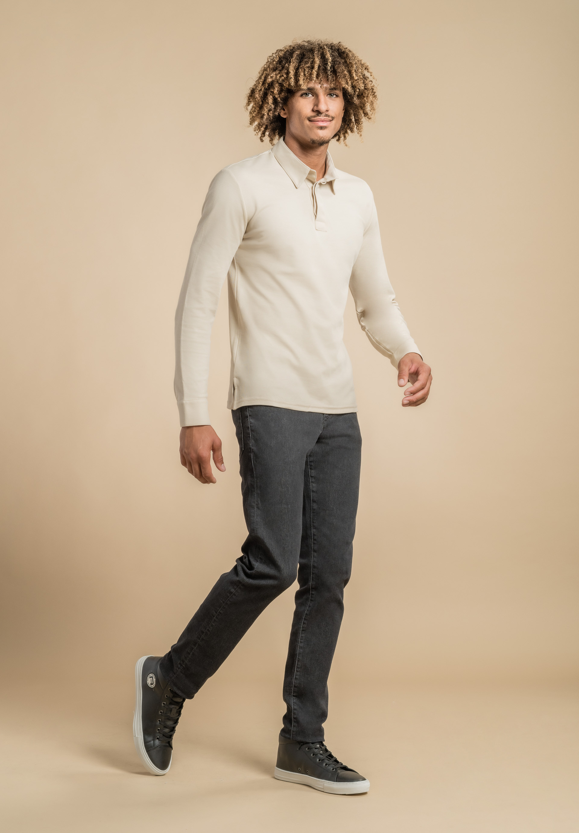 Polo da uomo, taglio sciancrato, collo camicia