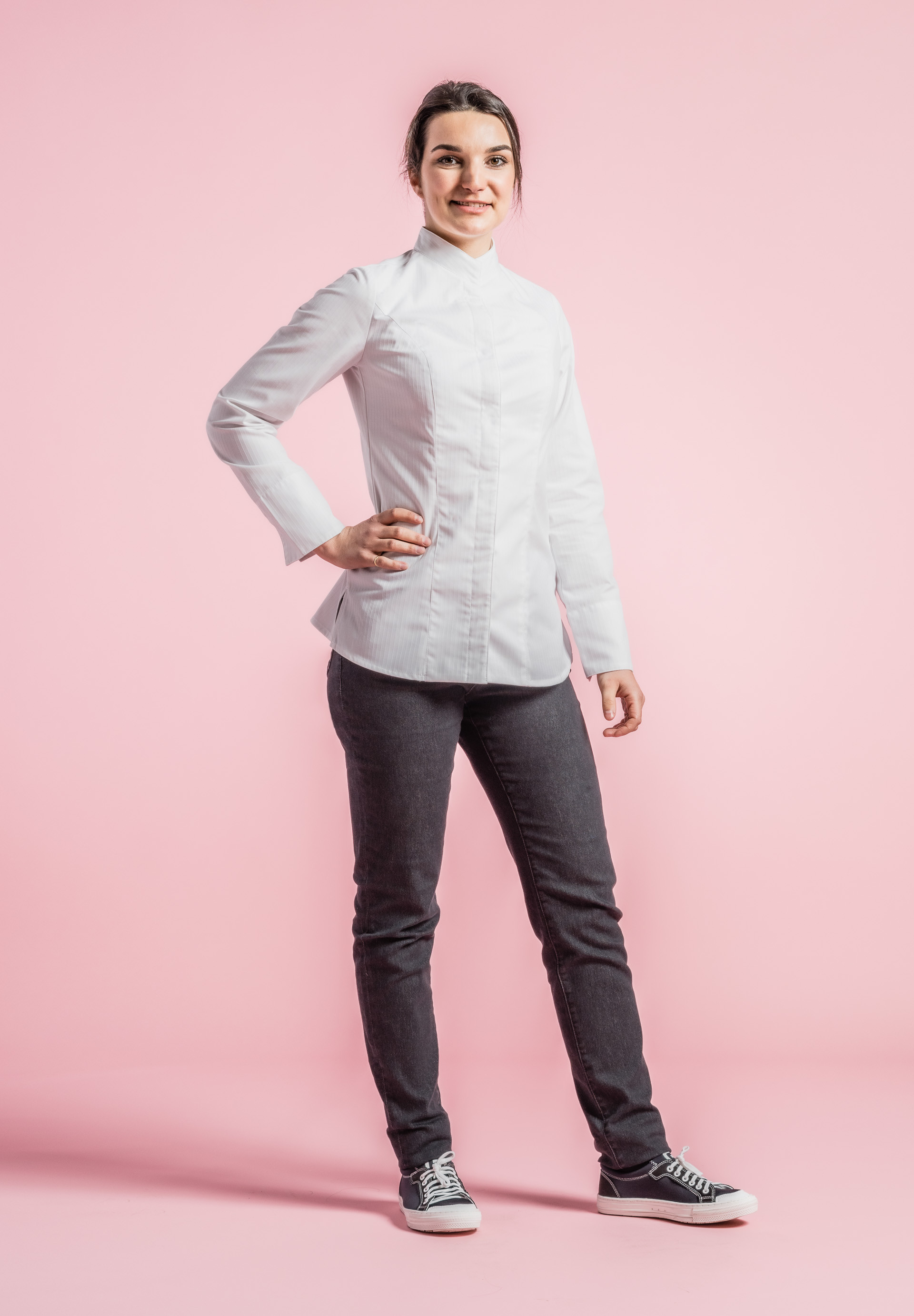Giacca donna da cucina, collo alla coreana con lembi sovrapposti